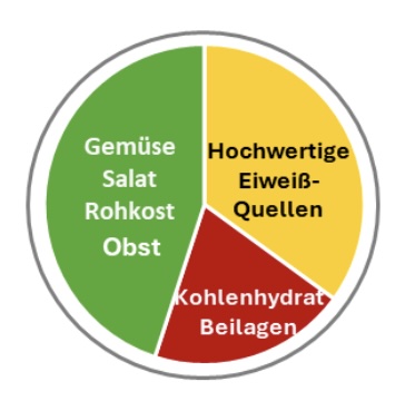 Kochen: mit frischen Lebensmitteln selbst Frühstück & Hauptmahlzeiten bereiten, Vermeiden von Fertiggerichten. Der Teller soll ca. halbvoll sein mit Gemüse/Salat/Obst ordentlich pflanzliches/tierisches Eiweiß und wenig Kohlenhydrate guter Qualität.